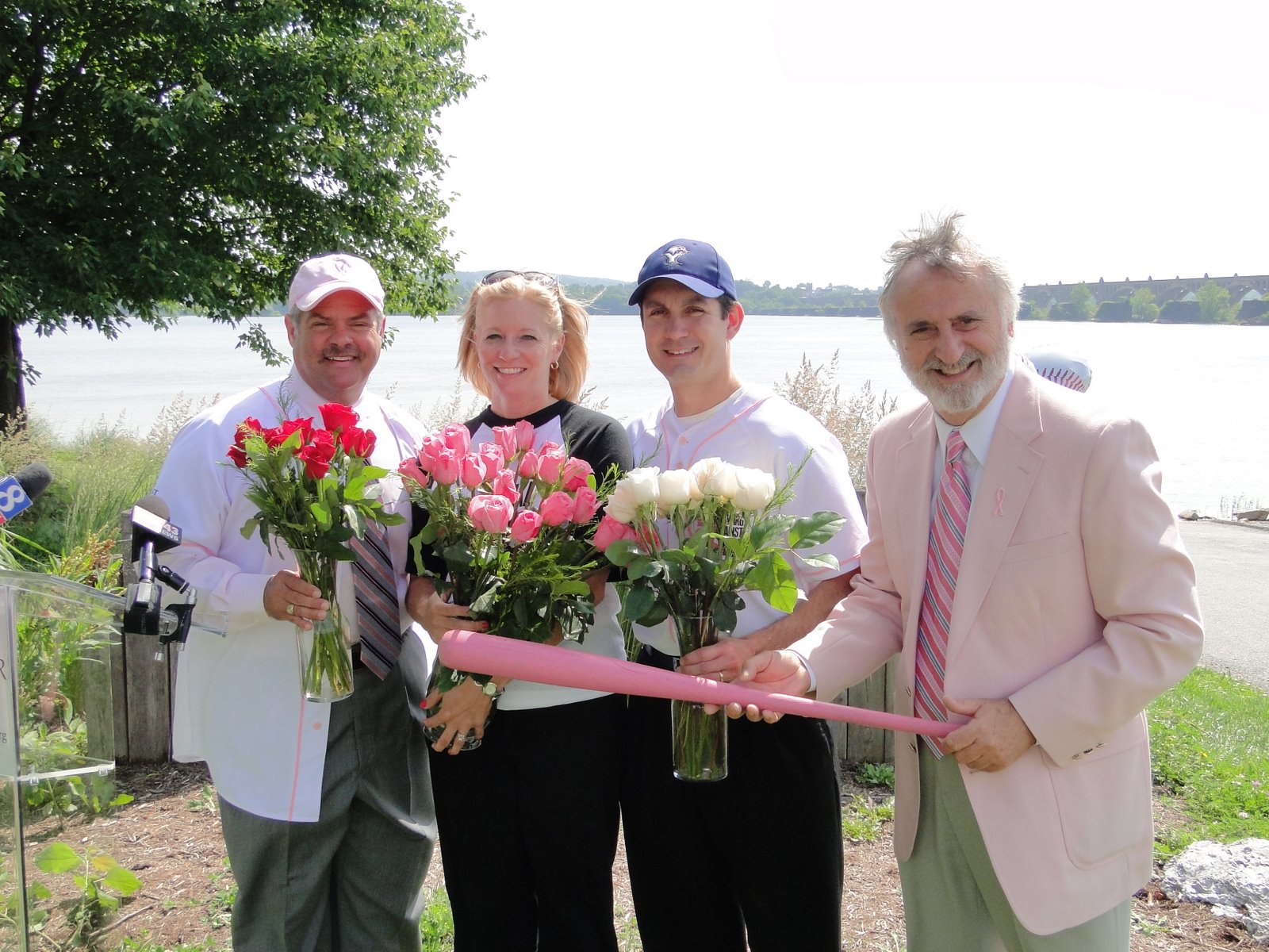 Playing off of their friendly rivalry, Boyd and DePasquale presented PA Breast Cancer Coalition Executive Director Heather Hibshman with a bouquet of pink roses to show the uniting force Lancaster and York can have against breast cancer.