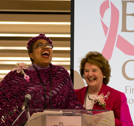 Pennsylvania’s First Lady Susan Corbett, Honorary Chair of the Conference, shared her experience as the daughter of a breast cancer survivor in her keynote address. Thomas Frazier, M.D. and Mimi Barash Coppersmith were each presented with the Pink Ribbon Award for their contributions to the fight against breast cancer, and each spoke about why they are passionate about this battle. The big surprise of the day was the $100,000 research grant presentation to Dr. Craig Meyers.