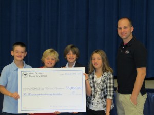 Carlisle Regional Medical Center, the Tuckey Companies, the Phillips Group, Giant, and the North Dickinson Elementary School PTO joined in support of the students’ efforts with donations. The classroom that raised the most – Denise Stasyszyn’s combined fourth- and fifth-grade class – was rewarded with a pizza party courtesy of Little Caesars. But the impressive school wide effort was recognized by Dairy Queen with an ice cream party. Thanks to Sam, Clay, Delaney, Tyler and all the students, parents, teachers and staff of North Dickinson Elementary for showing that a little change can go a long way to helping in the fight against breast cancer!